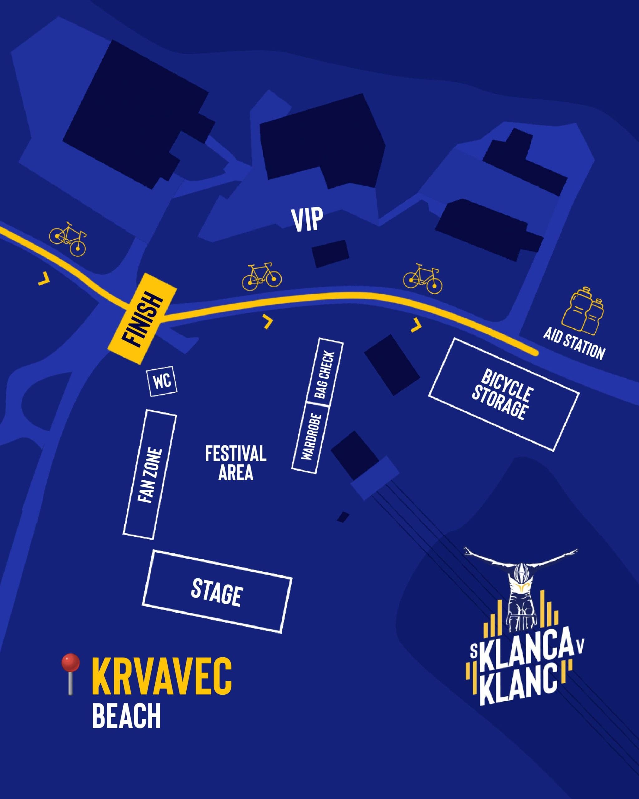 - Prostor za hrambo koles kjer bodo tekmovalci z izkazom startne številke kolo oddali osebju, ki zna rokovati s kolesi v hrambo. Prevzem koles bo prav tako možen z izkazom startne številke, najkasneje do 19.00. V prostor za hrambo koles ni vstopa. Nadzor nad logistiko prevzemanja in vračanja koles ima osebje dogodka.